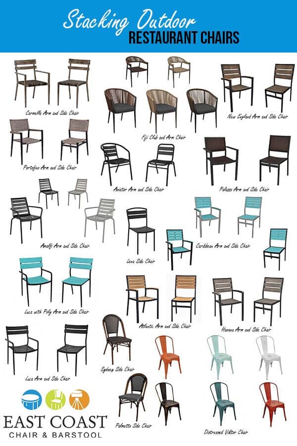 Check out these East Coast Chair & Barstool chairs that are durable for outdoor use AND can stack.