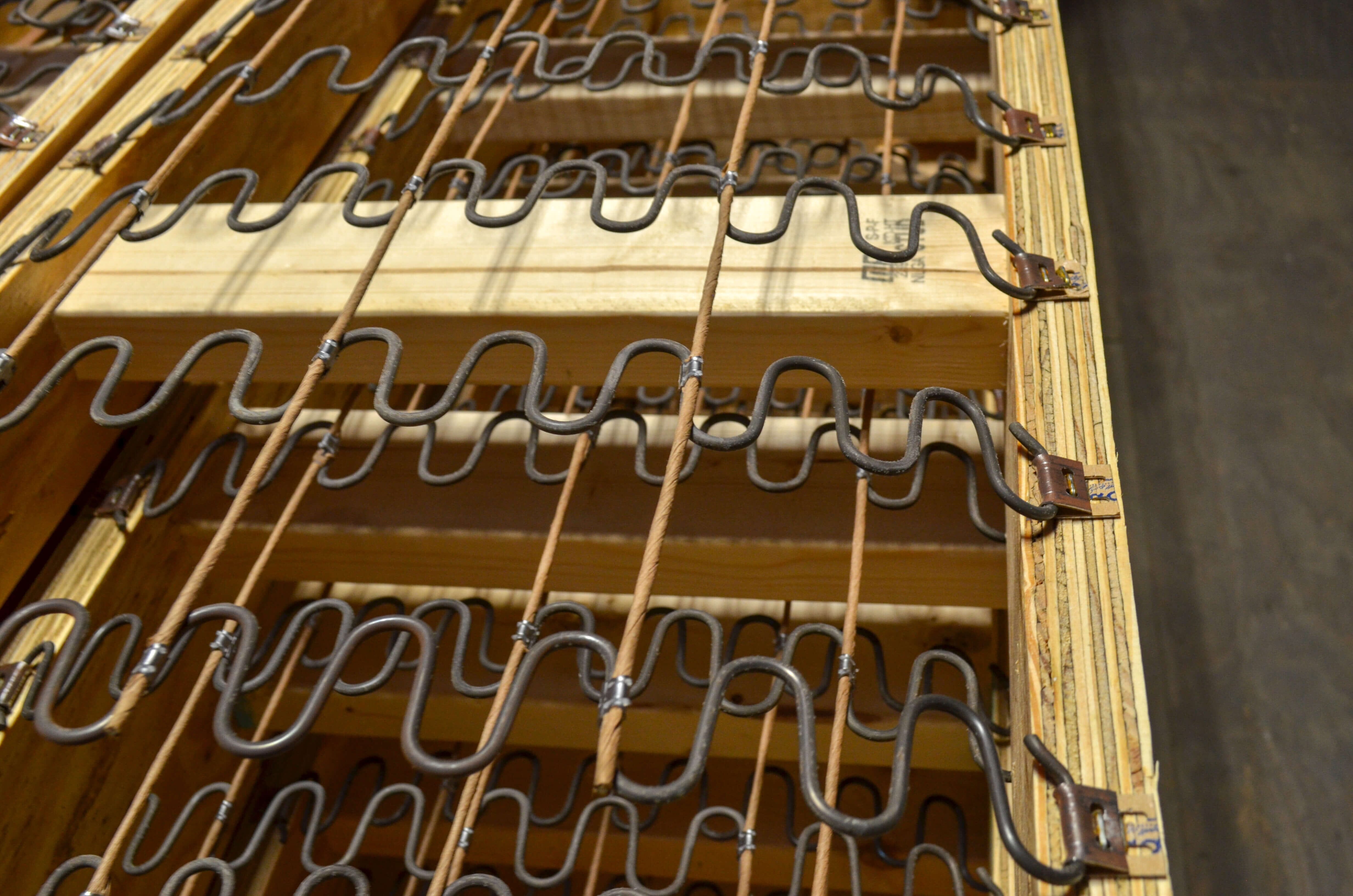 An integral part of determining a booth’s durability and comfort is the springs. We use no-sag Leggett and Platt springs. These springs have a unique coil design that is responsible for the no-sag feature. In addition to these high quality springs we use paper covered wires that string from one end of the seat to the other. We do this for an added layer of stability and protection. If by chance one of the heavy duty springs does break (which is unlikely), the extra wire will hold it in place so that the user doesn’t feel a broken coil. It also reduces the chance that the coil could poke through the vinyl.