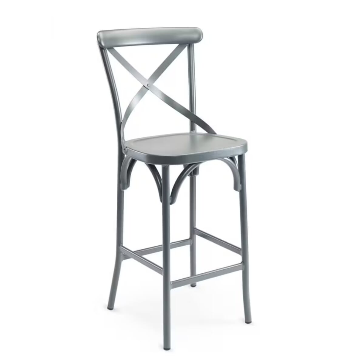 Antique-Style Grey Metal Cross Back Restaurant Bar Stool